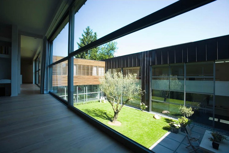 Rénovation d’un entrepôt en habitation familiale avec patio central.