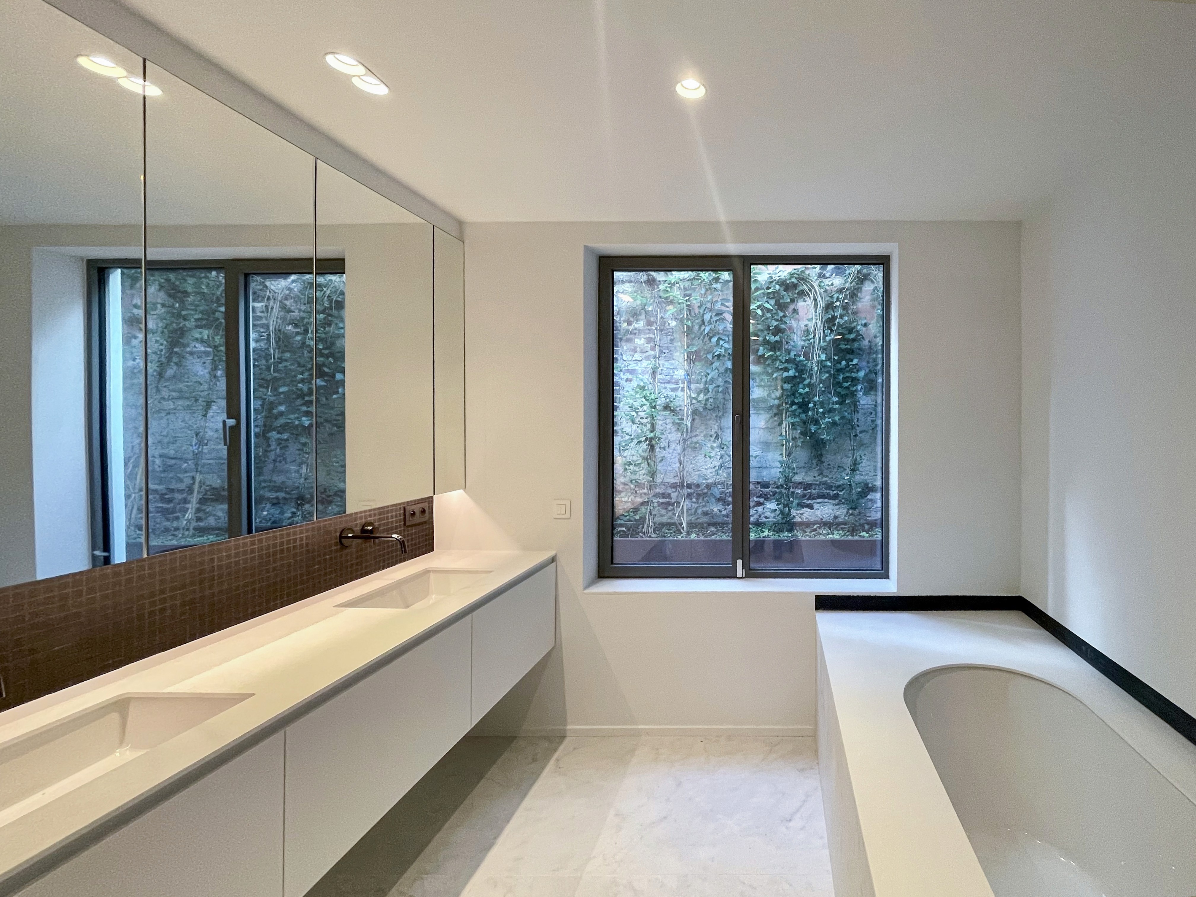 Un ancien bowling, situé en intérieur d'îlot, a été transformé en un logement spacieux de 600 m², de plain-pied, agrémenté d’une piscine. Ce logement repose sur deux étages de parking et profite du calme de l'intérieur d'îlot. Les différentes cours intérieures offrent des vues apaisantes, soit sur la piscine, soit sur des espaces arborés, créant ainsi une atmosphère de sérénité et de convivialité. Ce projet allie modernité et tranquillité, offrant un cadre de vie unique en cœur de ville