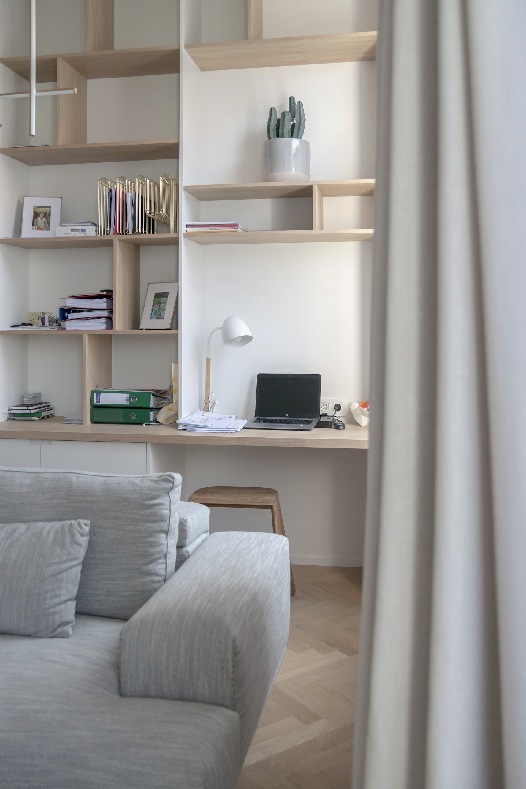 Un soin particulier a été apporté aux menuiseries intérieures, toutes conçues et réalisées sur mesure, renforçant le caractère unique et chaleureux du lieu.
