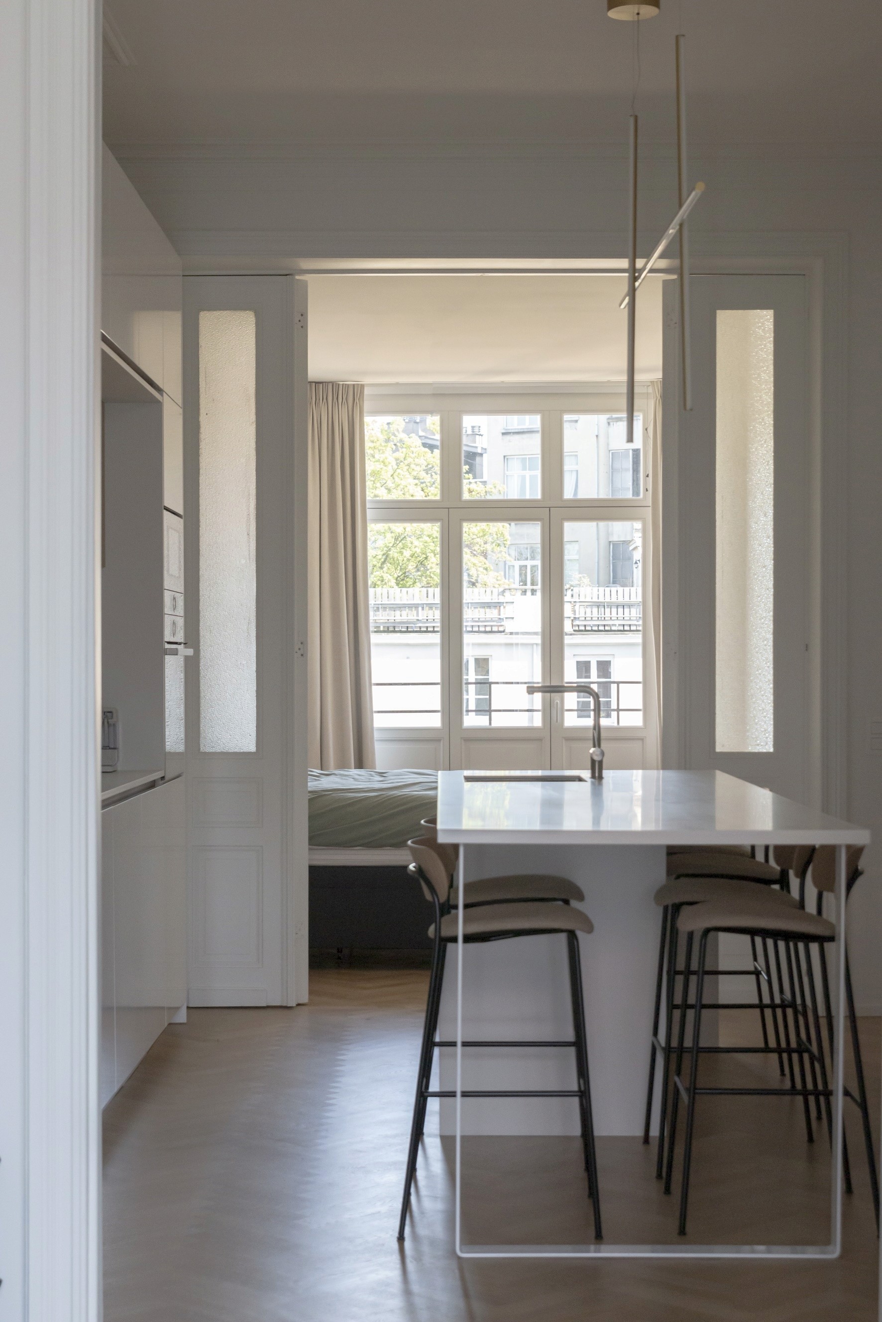 Ce projet a porté sur la rénovation complète d’un appartement classique de Bruxelles, avec ses trois pièces en enfilade.