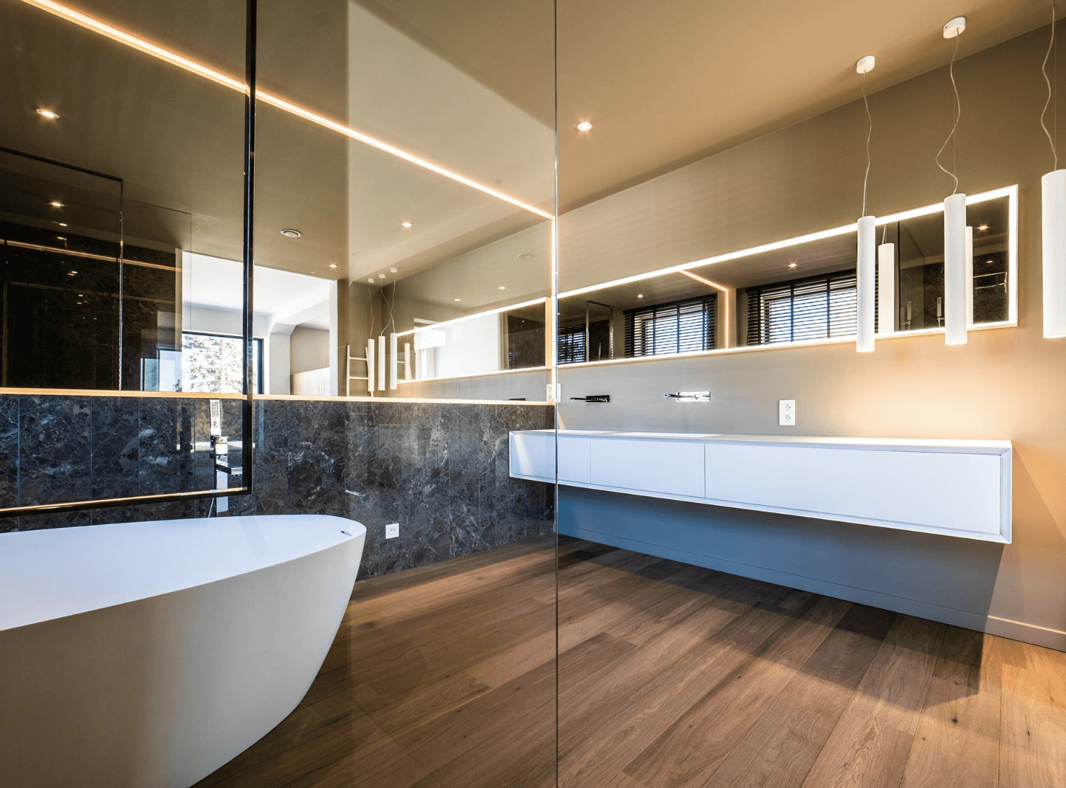 Cette villa neuve de 600 m² s’organise en L autour d’une piscine, offrant une orientation plein sud et des vues croisées entre l’intérieur et l’extérieur. Son architecture minimaliste met en valeur des volumes épurés et des lignes contemporaines, laissant place à la lumière et aux perspectives.