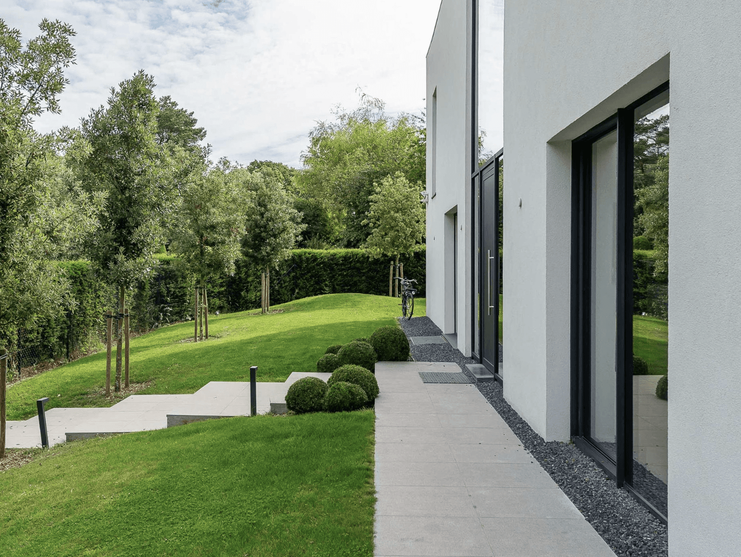 Les toitures plates ont été conçues pour intégrer des terrasses privatives aux chambres de l’étage, créant ainsi des espaces extérieurs intimes et fonctionnels. La maison se compose de quatre chambres, auxquelles s’ajoute une suite parentale offrant un espace privilégié.
